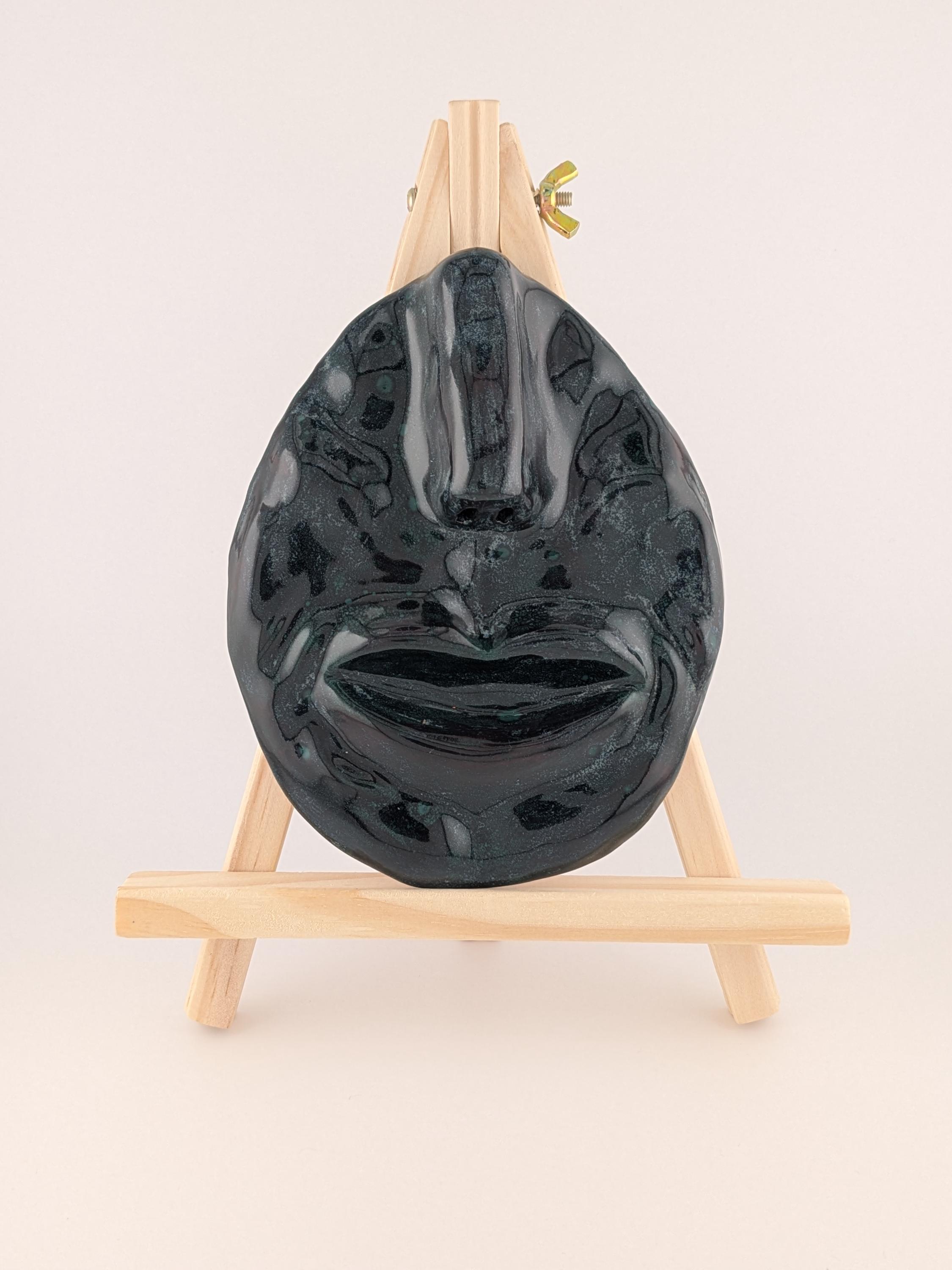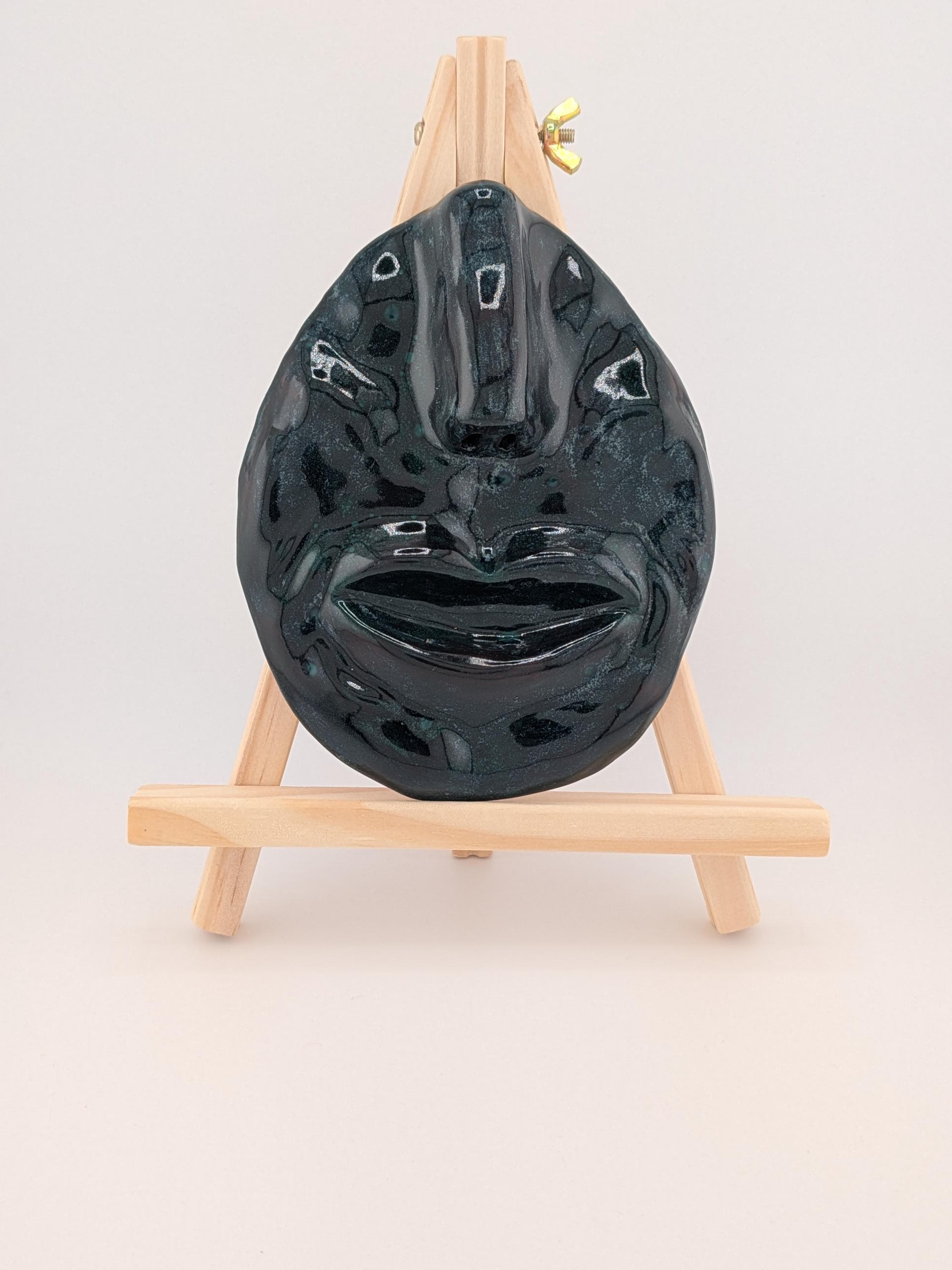 Hand built wall hanging made from clay and then glazed with an added design. Each piece is a one-off unique face. There is a spot on the back of each wall hanging, cut out for use of hanging on the wall. The face is 6 inches by 5 inches and weighs 12 oz.