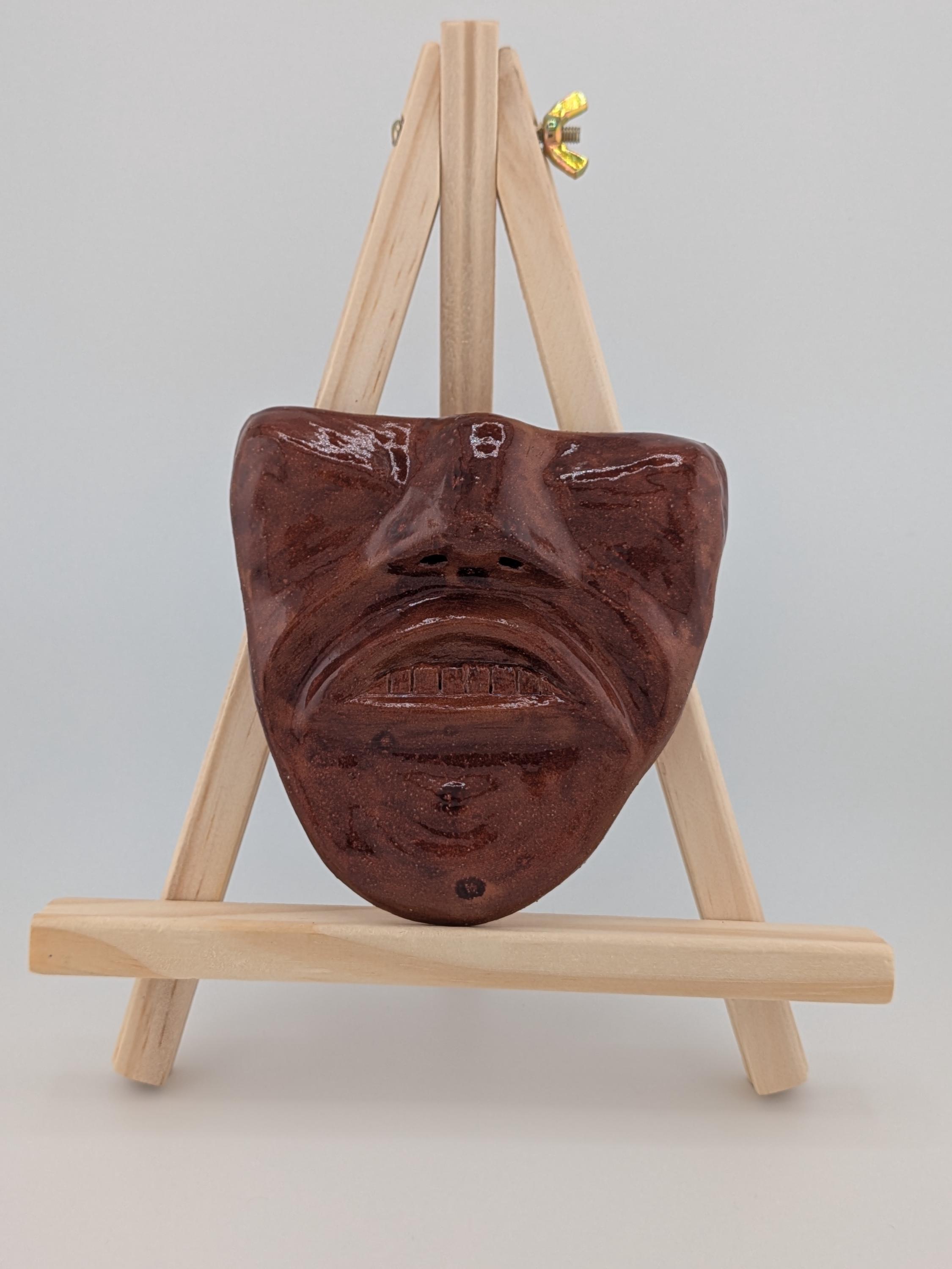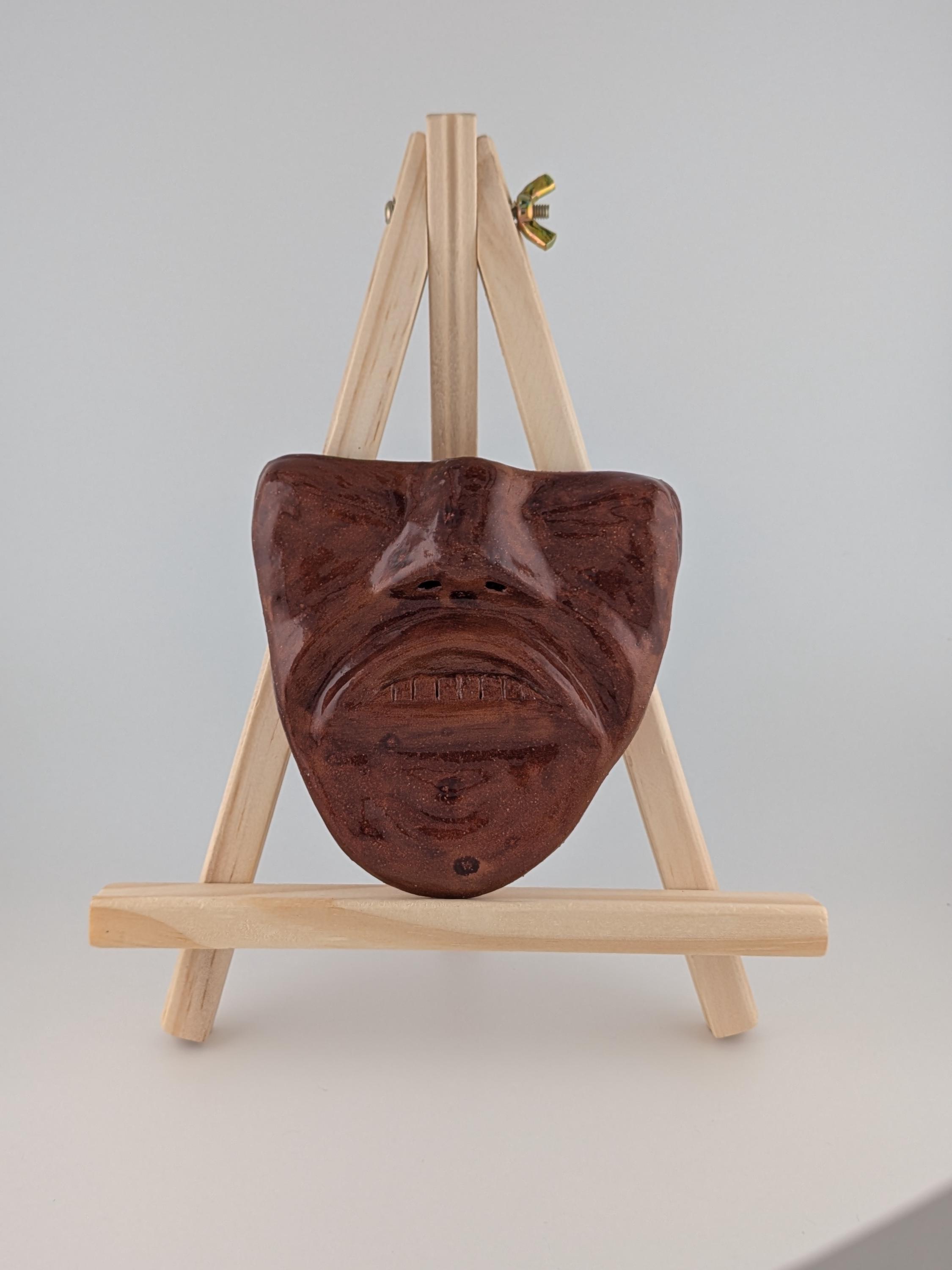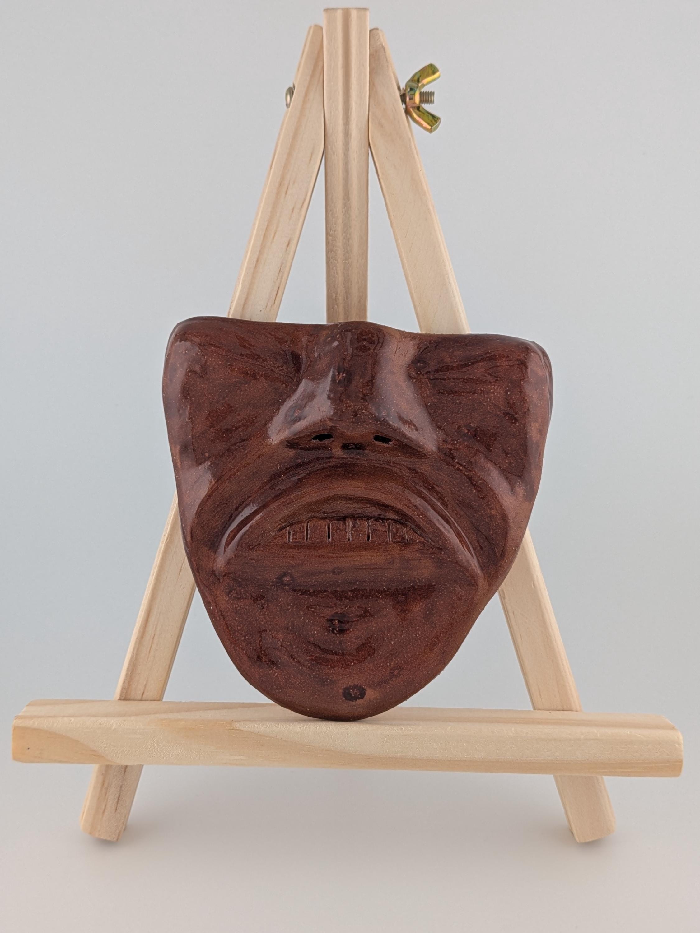 Handmade Ceramic Face Wall Hanging - Brown Grimace with Teeth